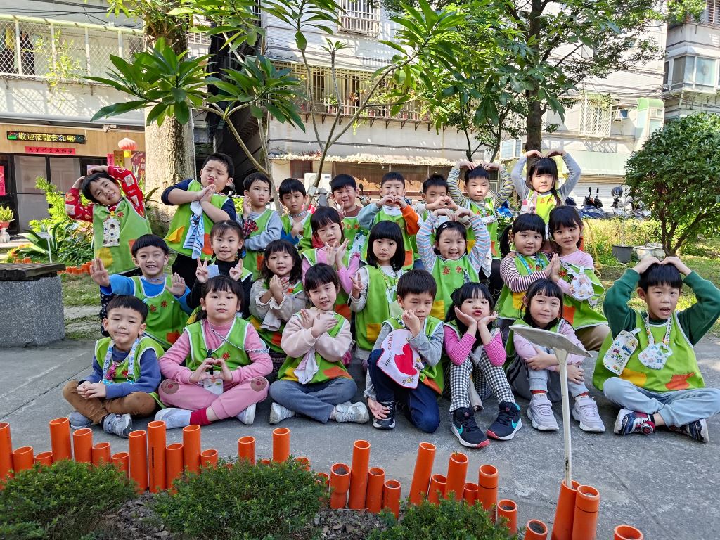 太陽班-1.15團照 小公園 花圃