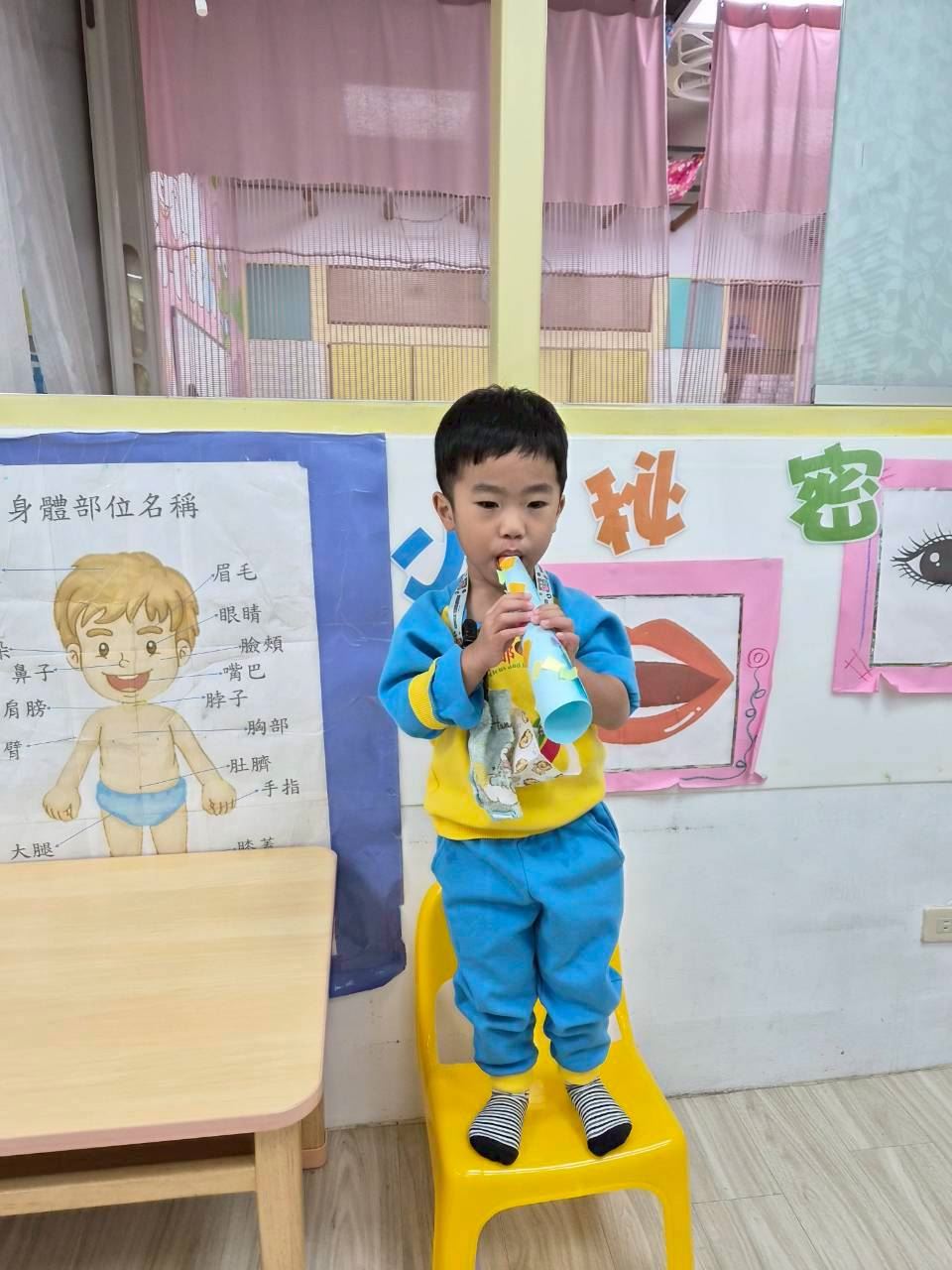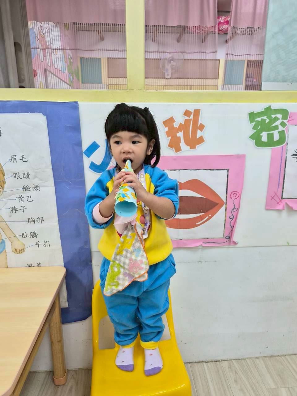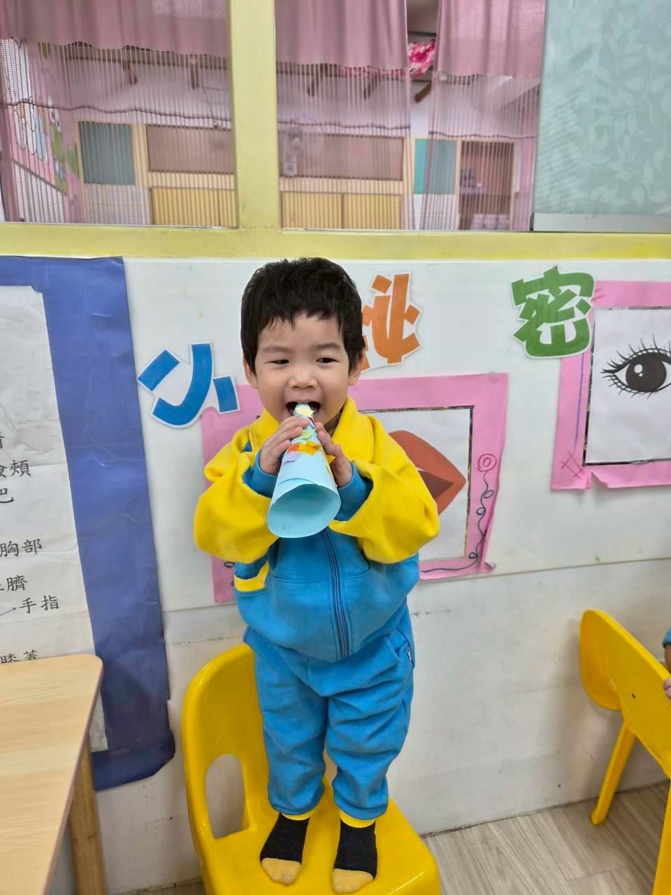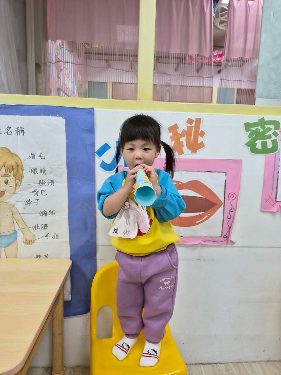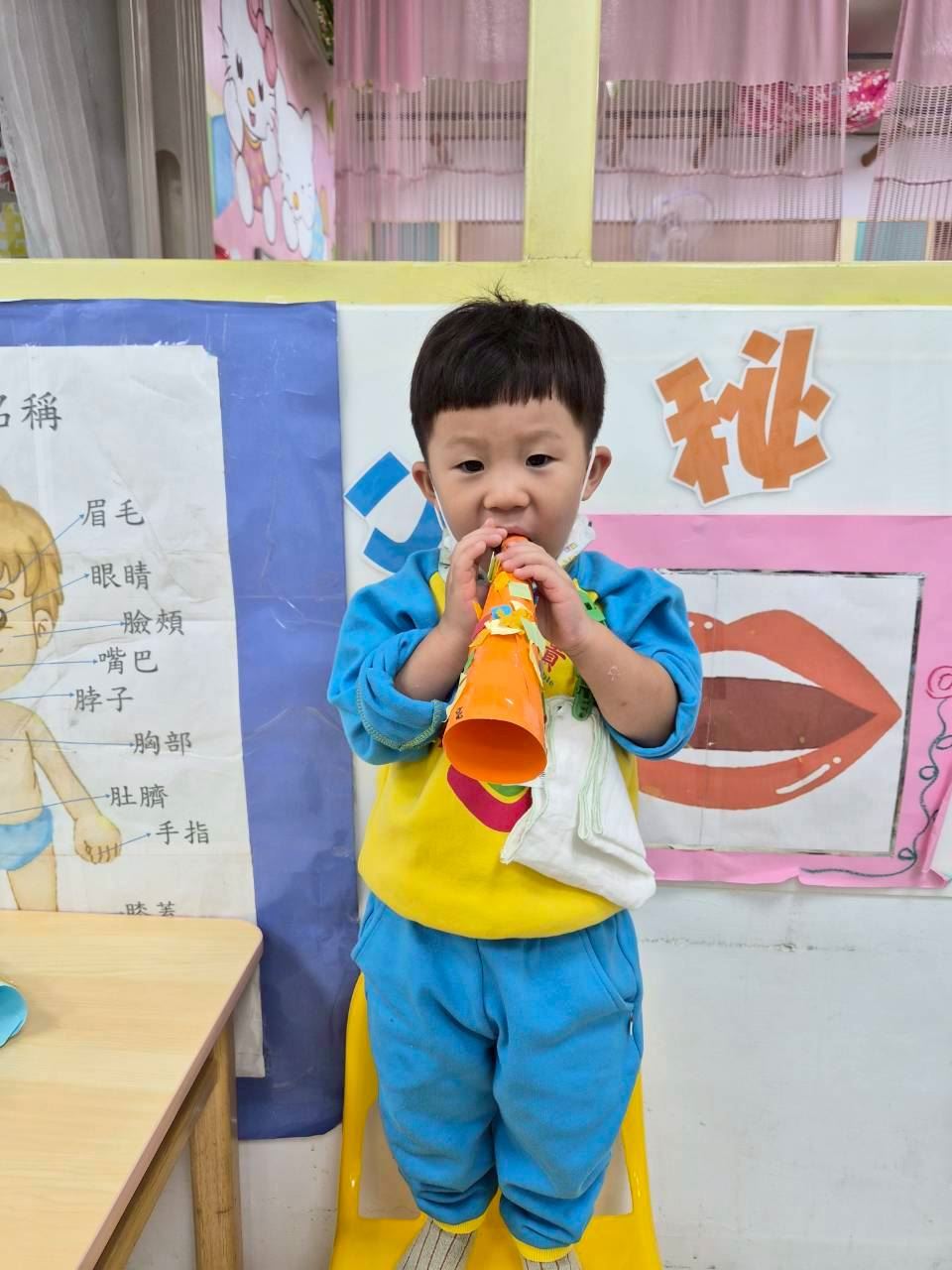 星星班主題活動-11.24用大聲公和大家問好