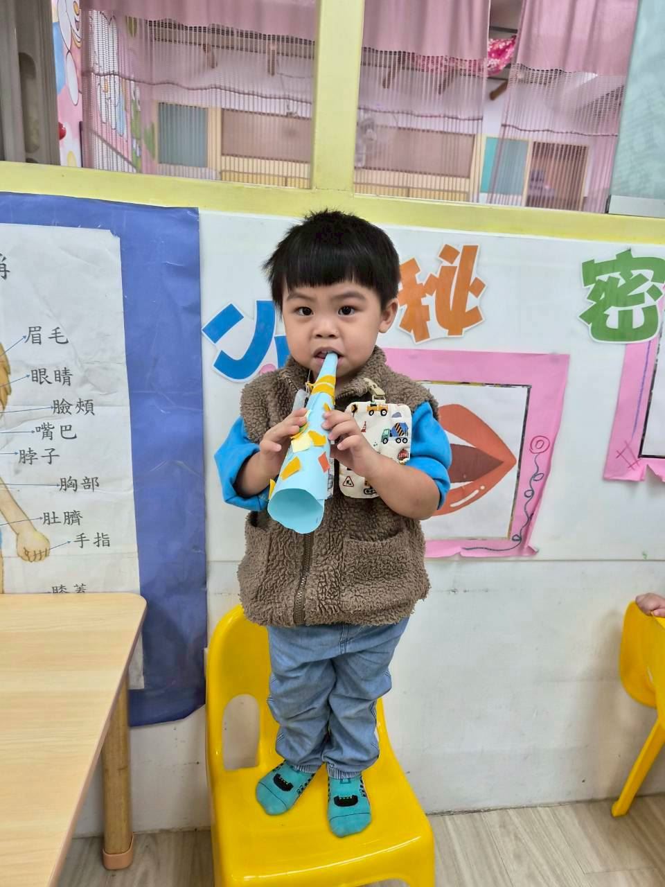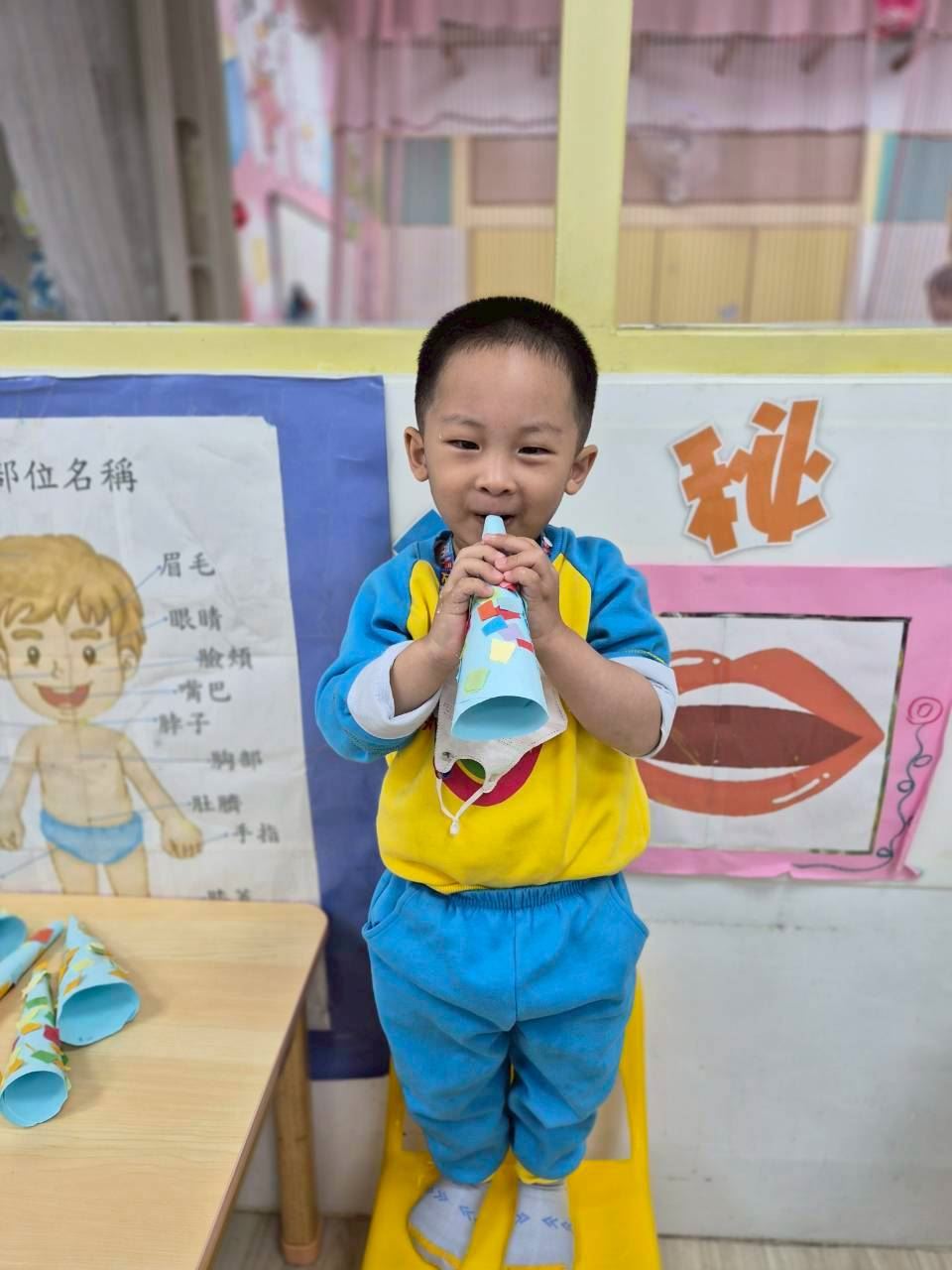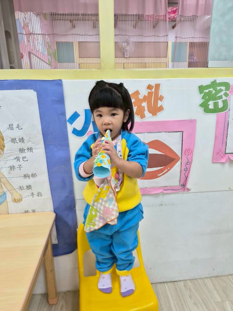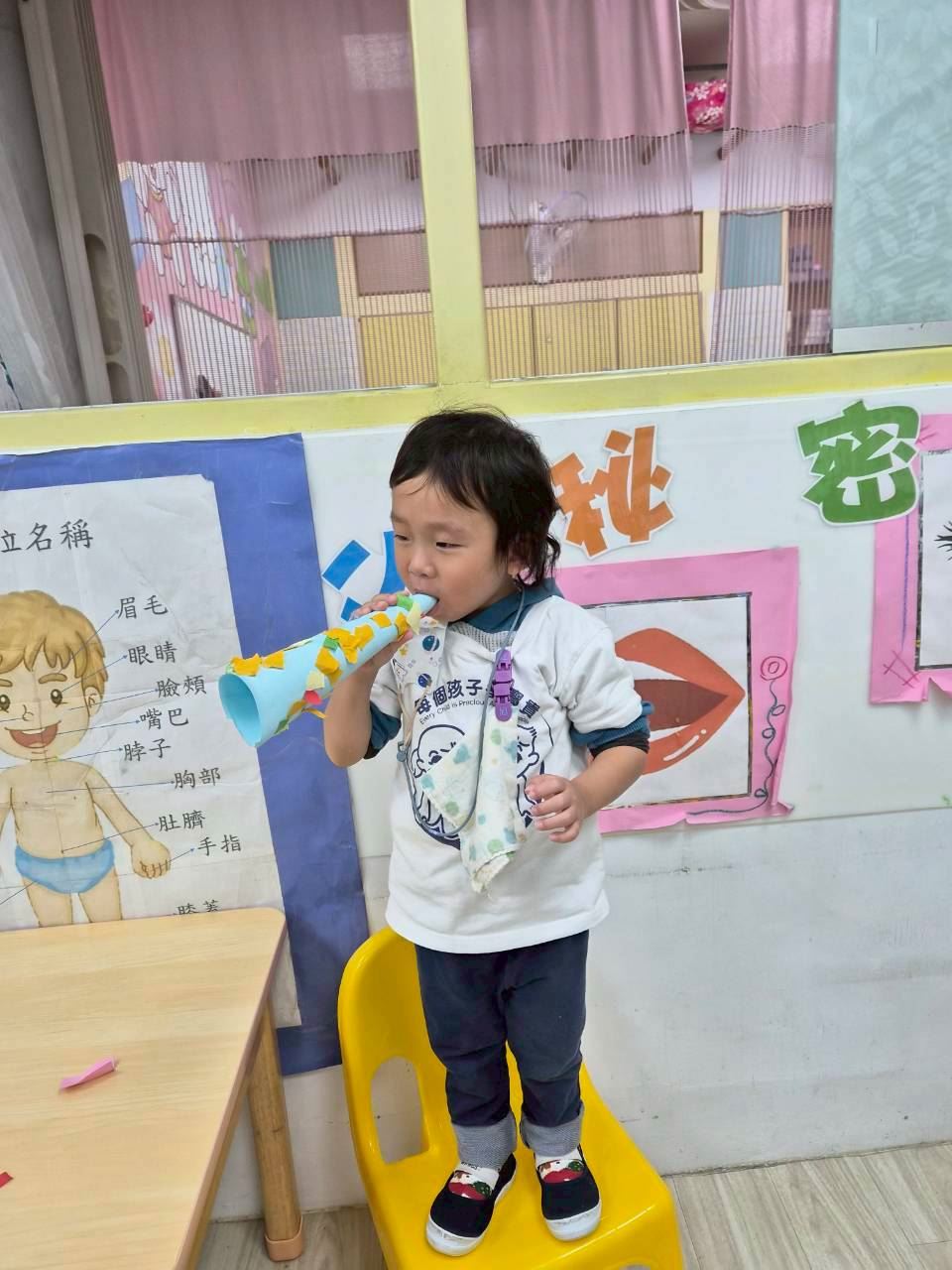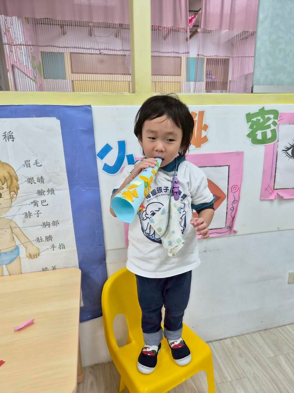 星星班主題活動-11.24用大聲公和大家問好