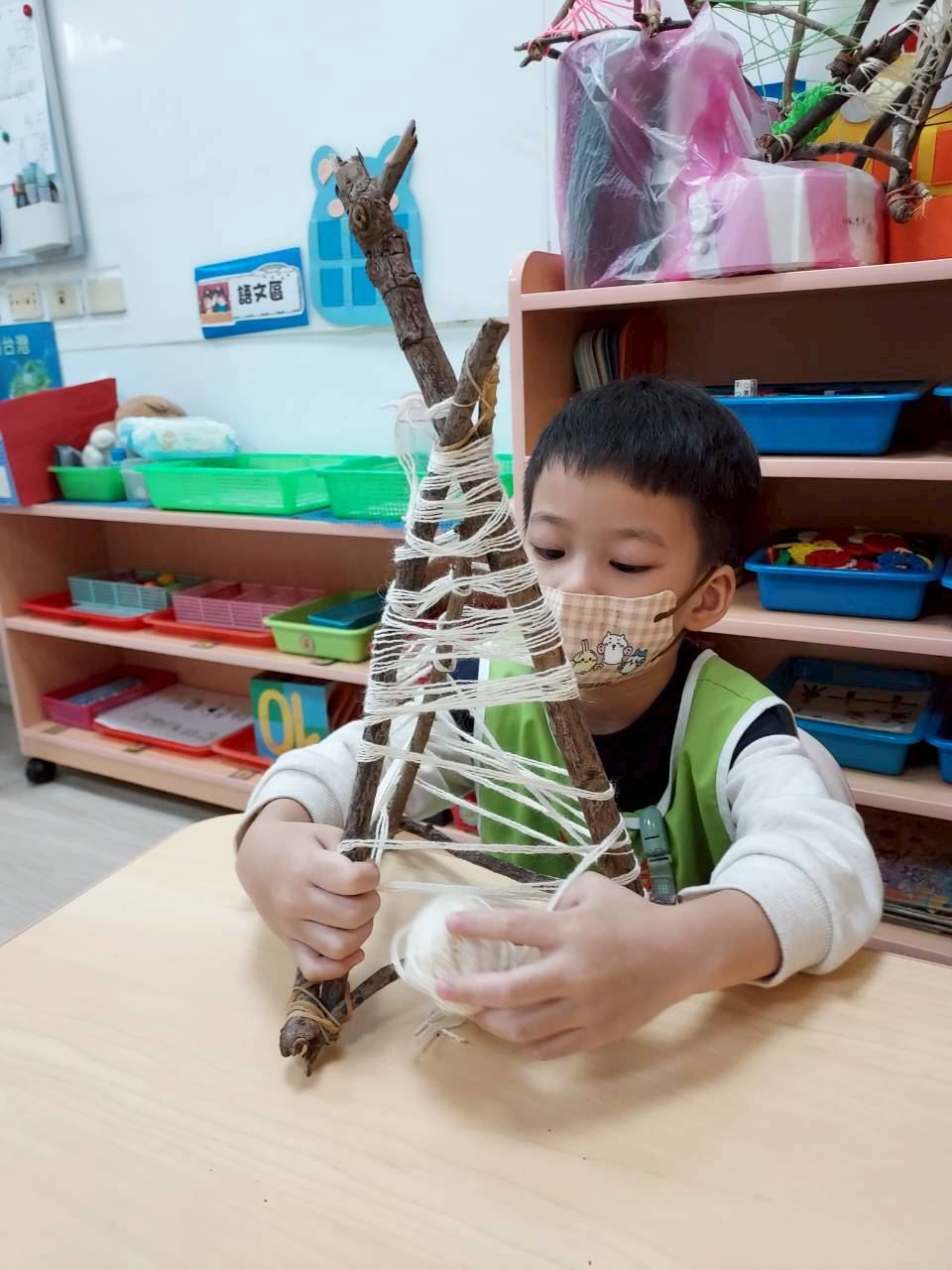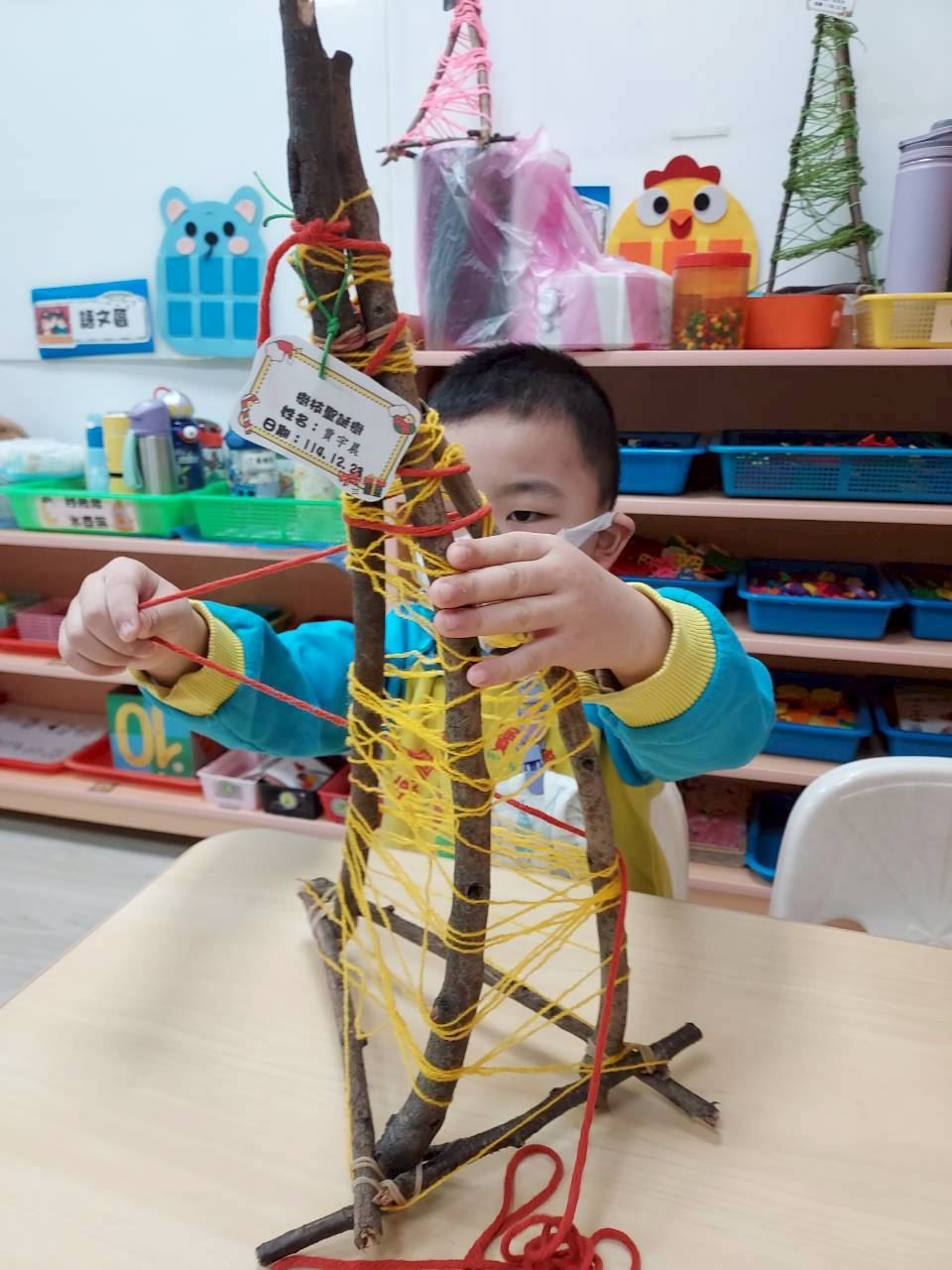 彩虹班-114.12.22-樹枝聖誕樹(繞毛線)
