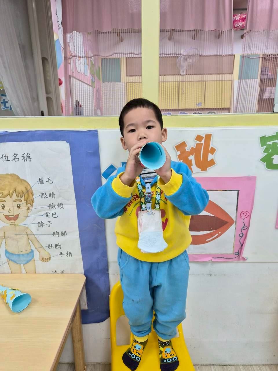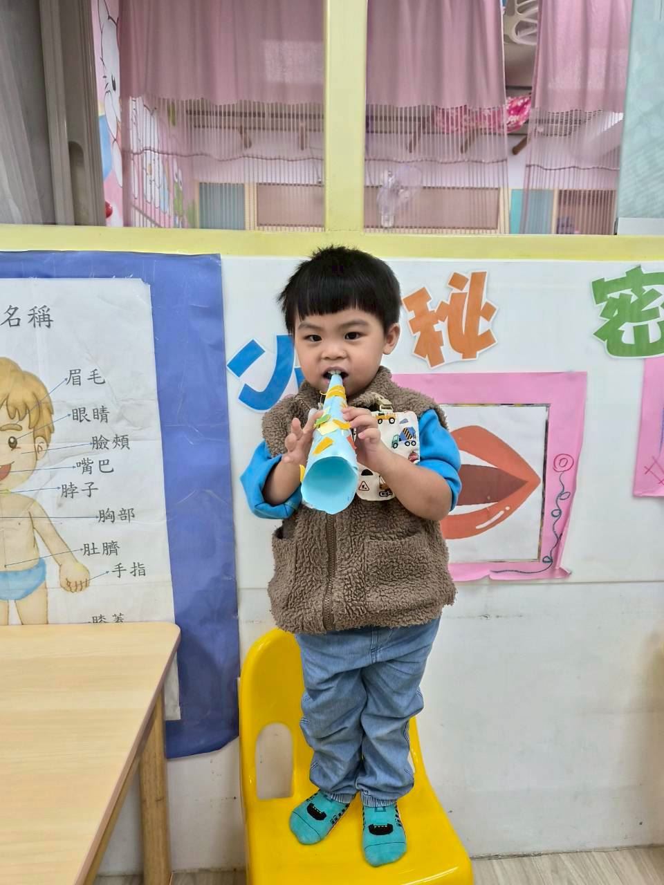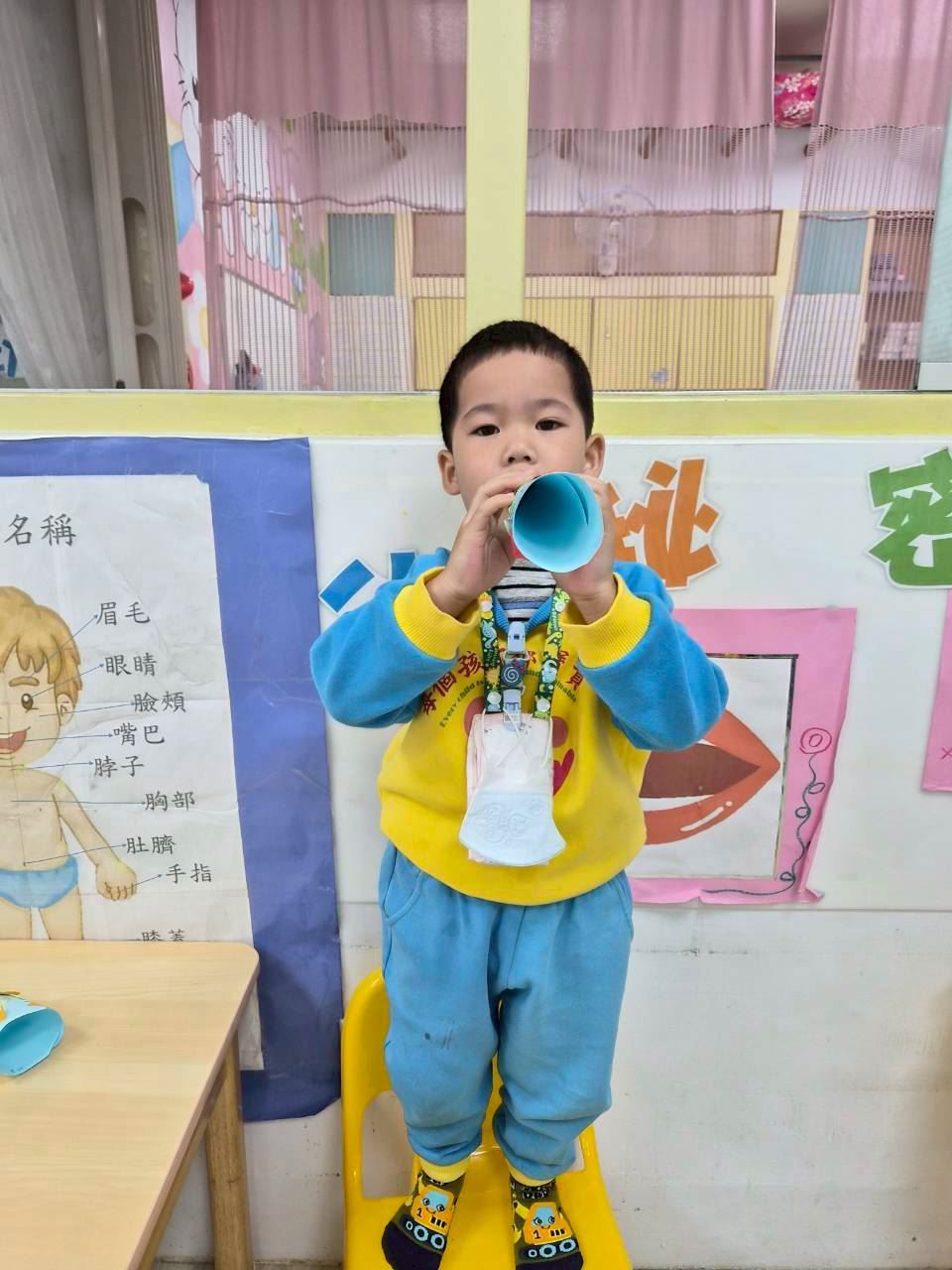 星星班主題活動-11.24用大聲公和大家問好