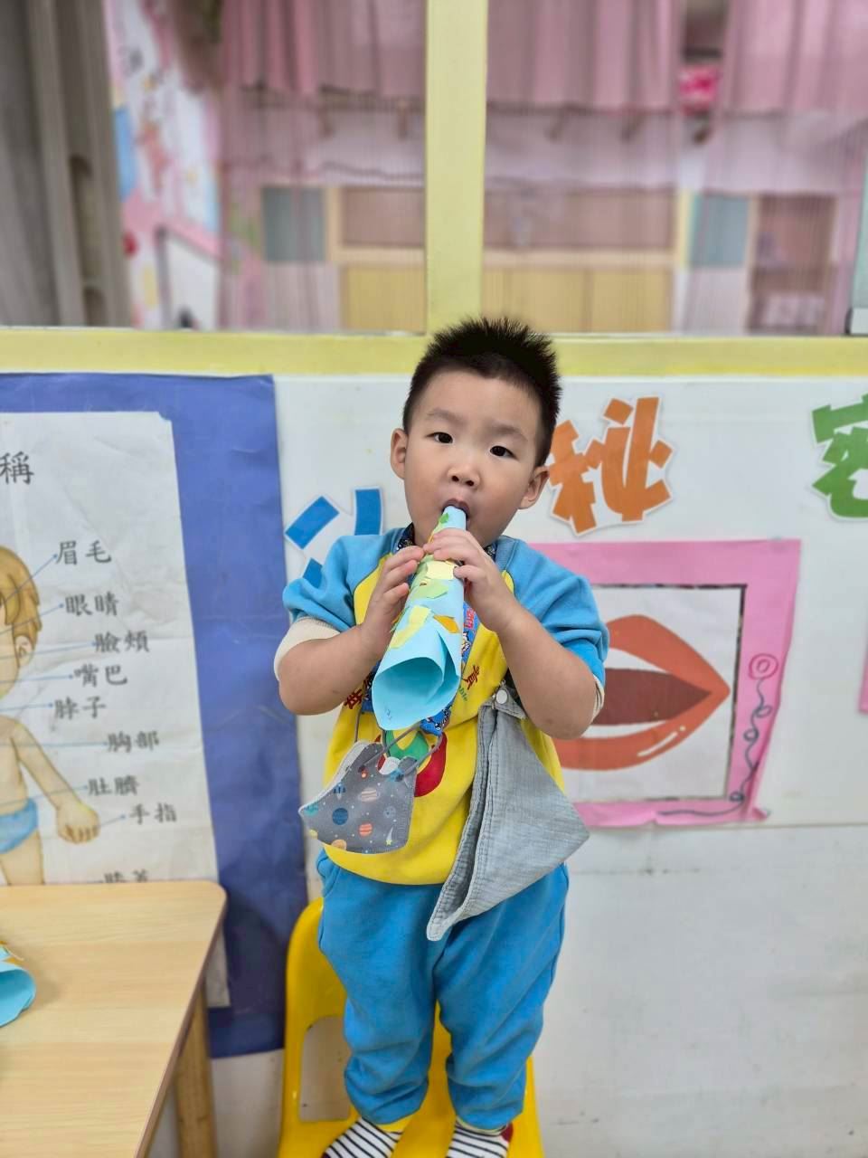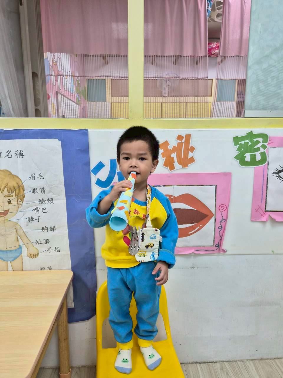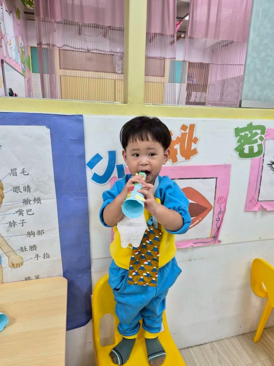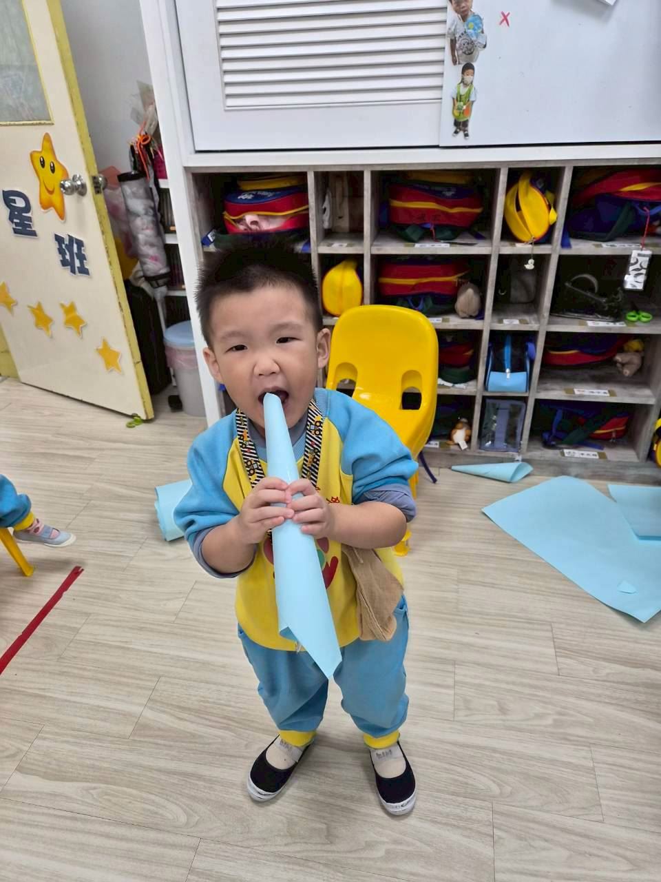 星星班主題活動-11.24用大聲公和大家問好