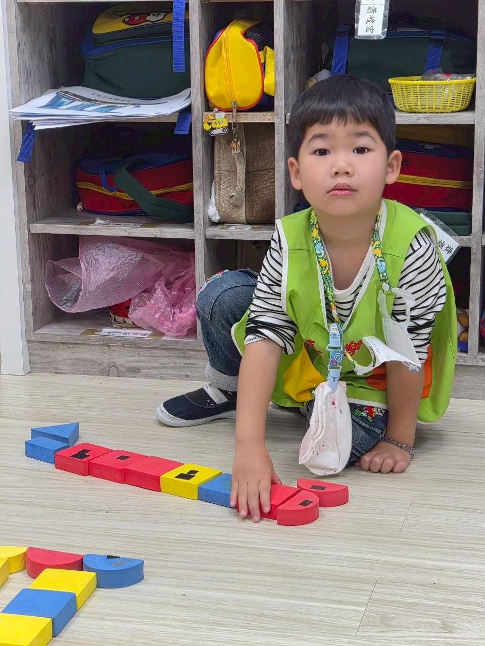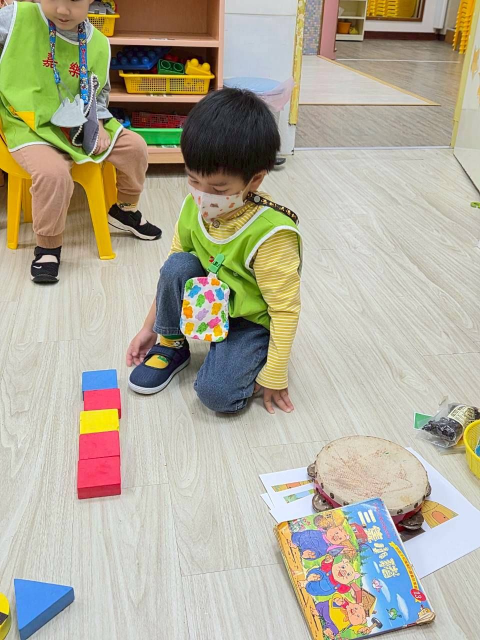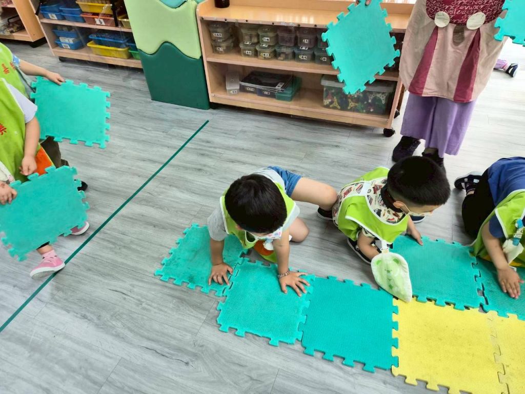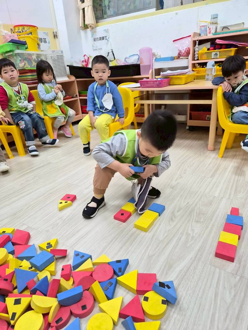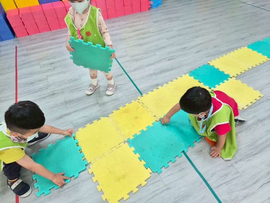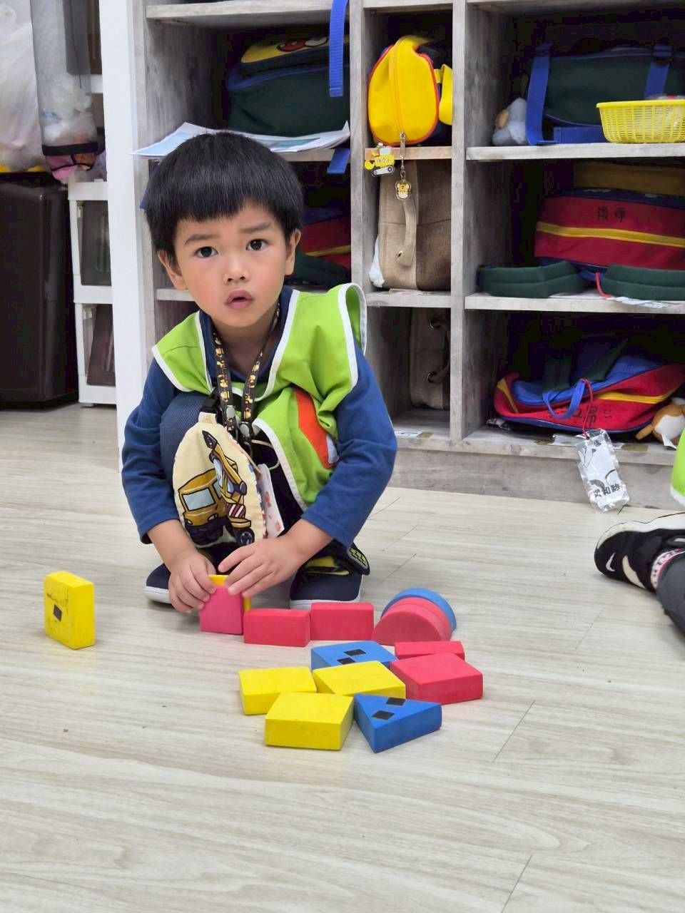 星星班主題活動4/8.4/14積木仿建奇特建築及正方形墊子拚長方形