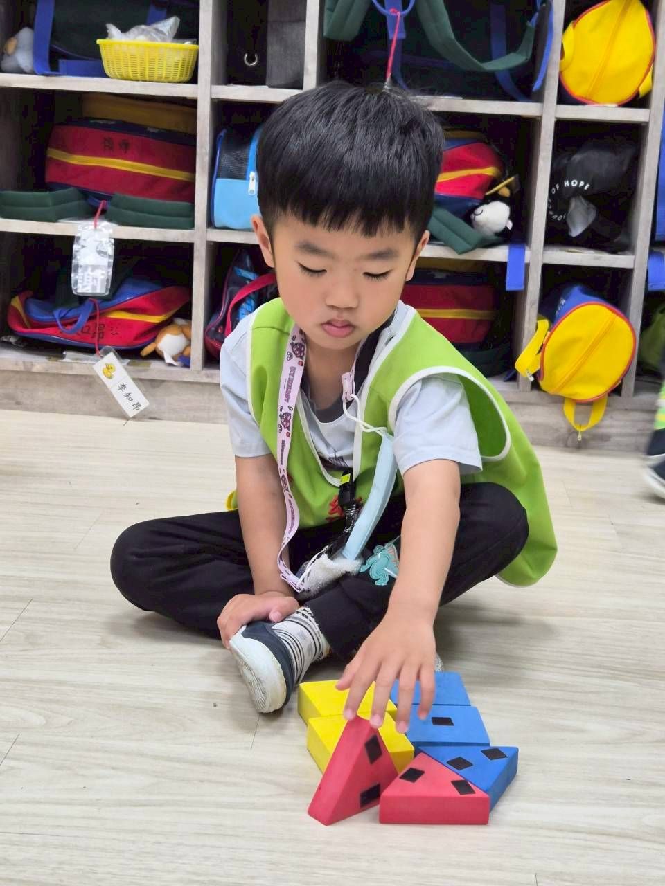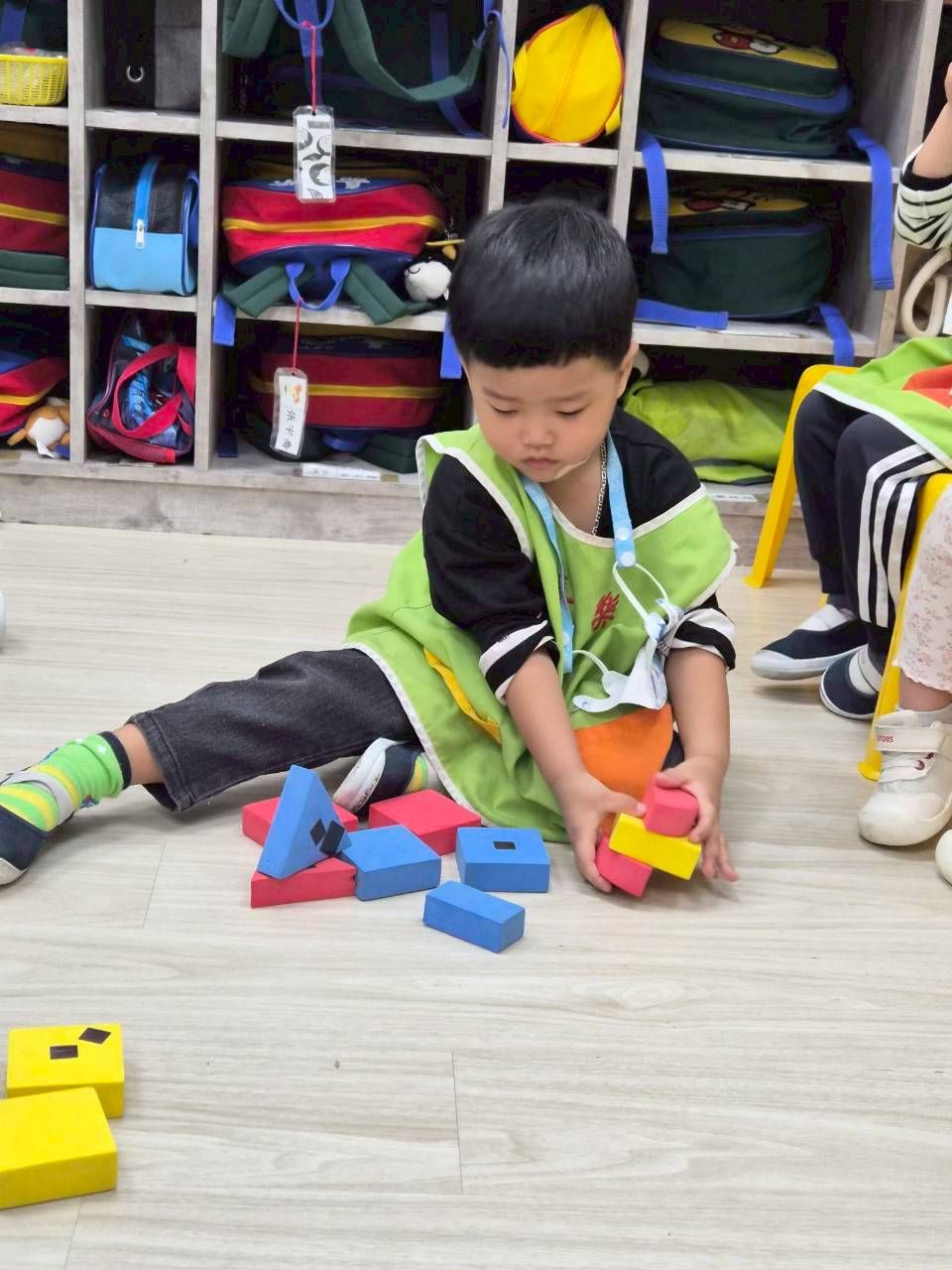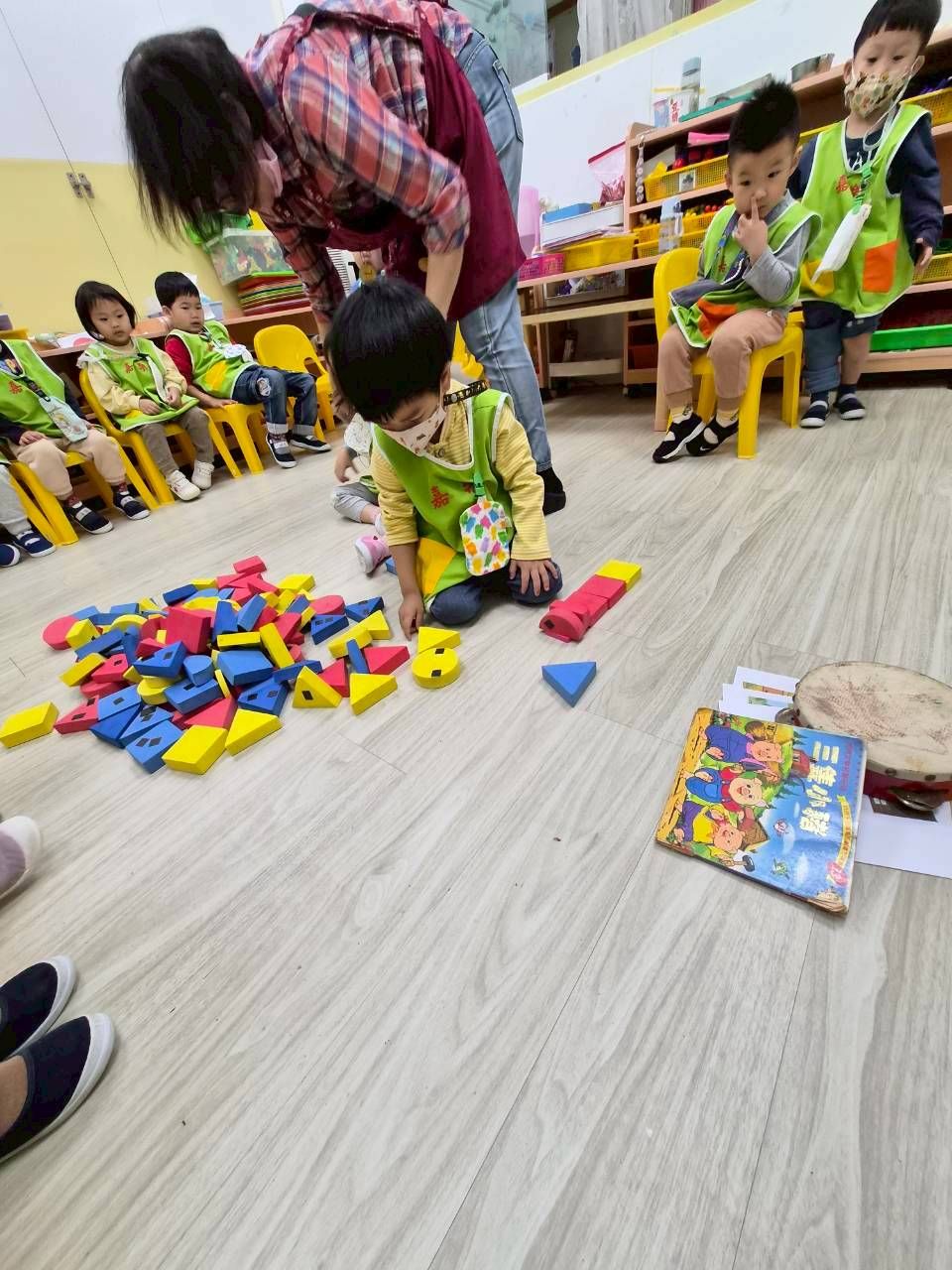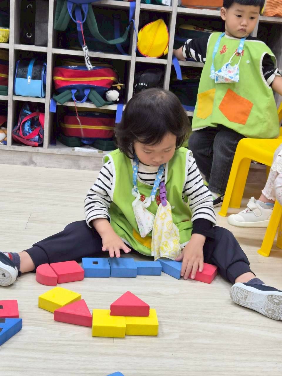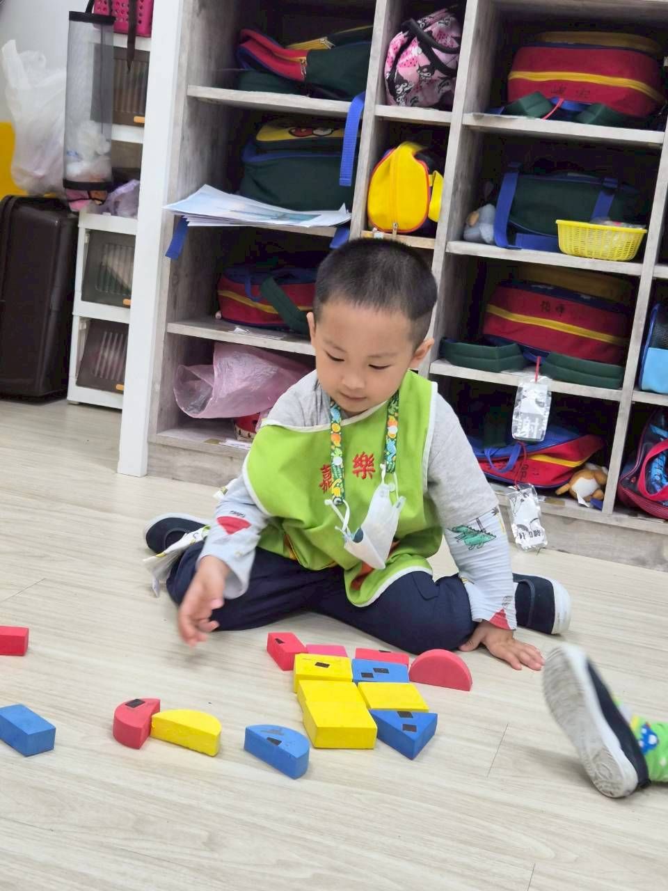 星星班主題活動4/8.4/14積木仿建奇特建築及正方形墊子拚長方形
